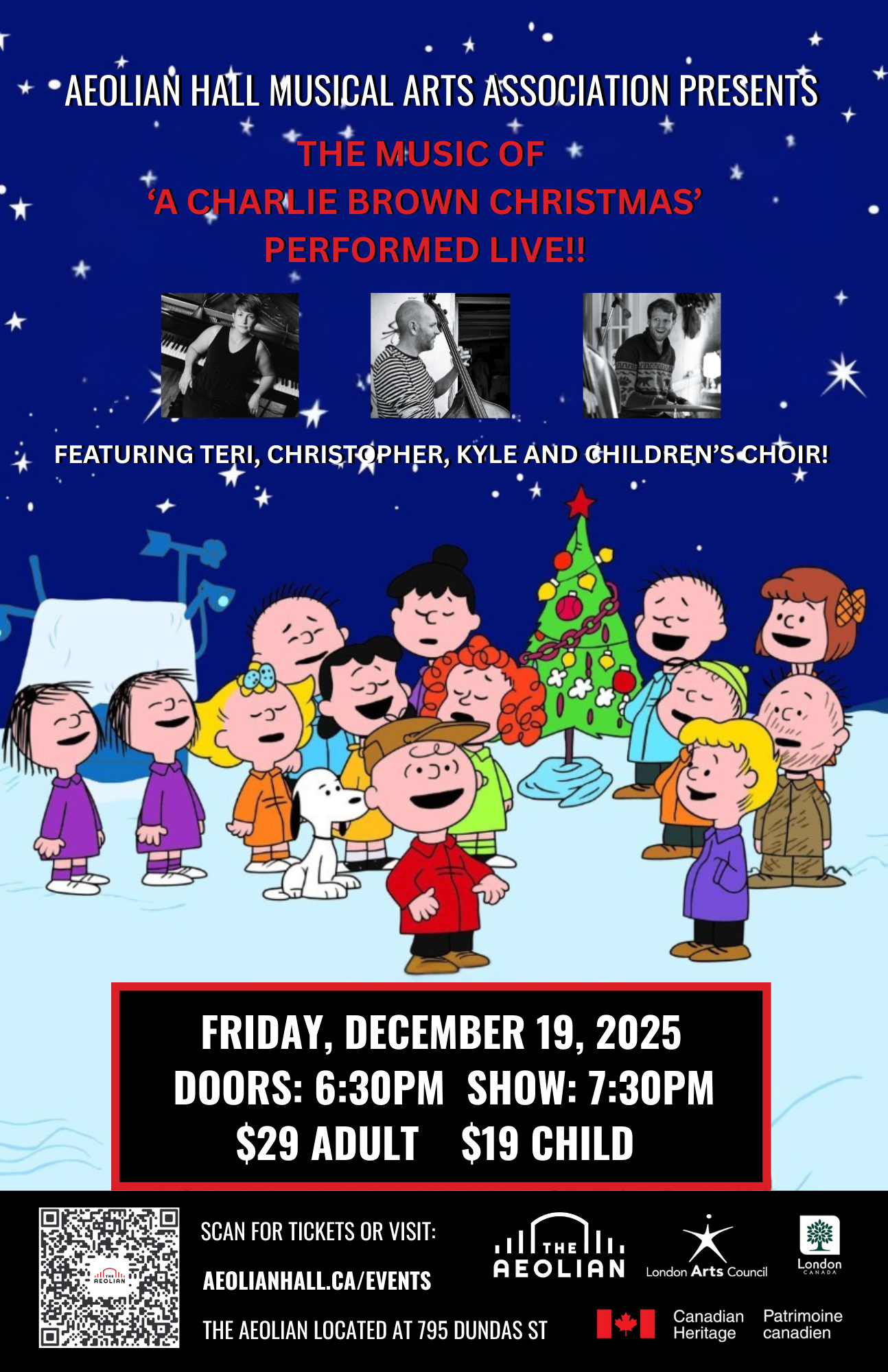 A Charlie Brown Christmas is an Emmy Award-winning holiday movie tradition, enjoyed by children and grownups everywhere. The 1965 soundtrack ranks among the best-selling jazz albums of all time, having been certified 5-times platinum. The cherished and nostalgic holiday music composed by Vince Guaraldi is equally as magical as the film, especially hits such as “Christmas Time is Here.” Join us this holiday season for a jazz performance with beloved jazz trio Sullivan-Parker-Kettlewell.